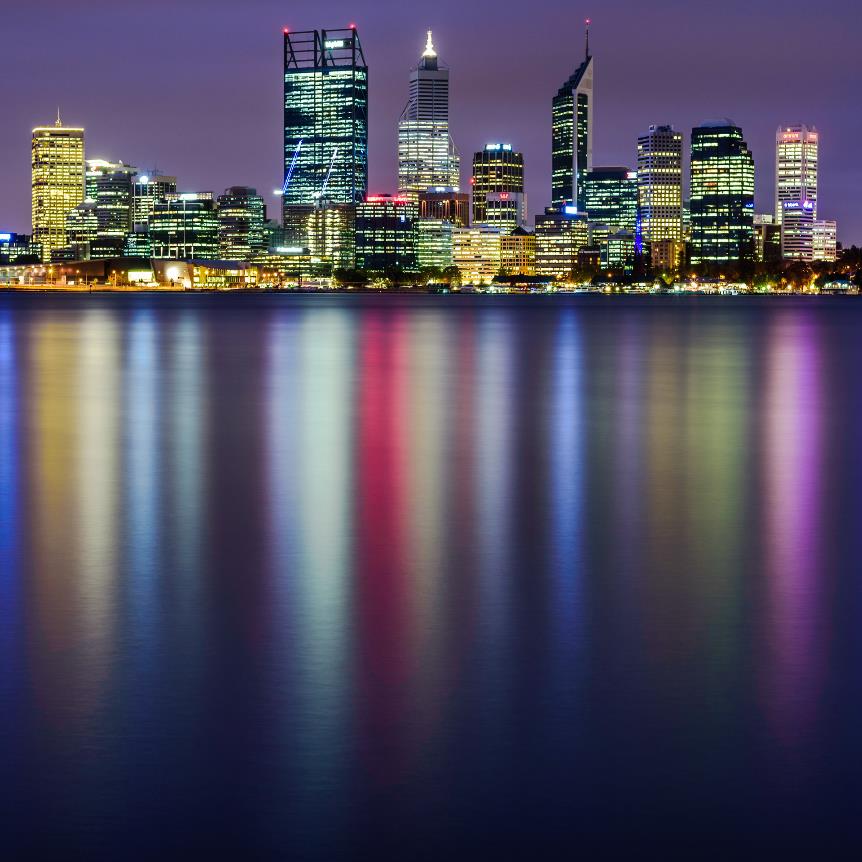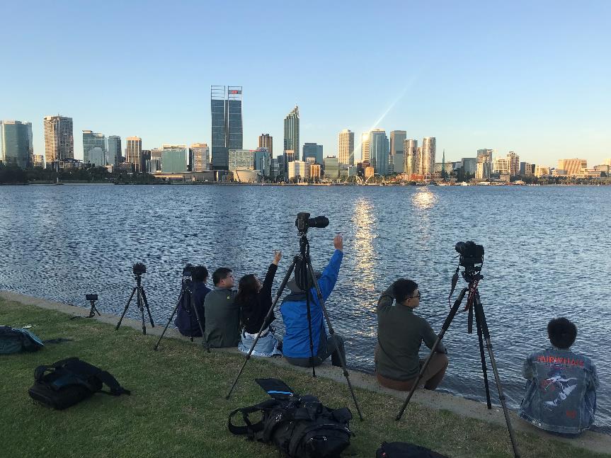 驻足欣赏完埃斯佩兰斯的美丽的海岸线后我们踏上返程之路,回到旅程之初的起点-珀斯。大家纷纷表示意犹未尽,想在离开之前再拍拍这座城市。于是我带领大家来到天鹅河畔的南珀斯区,这里与市中心隔河相望,能借着倒影欣赏城市风光。我们在岸边驻足停望,看着天色渐暗,霓虹渐上。