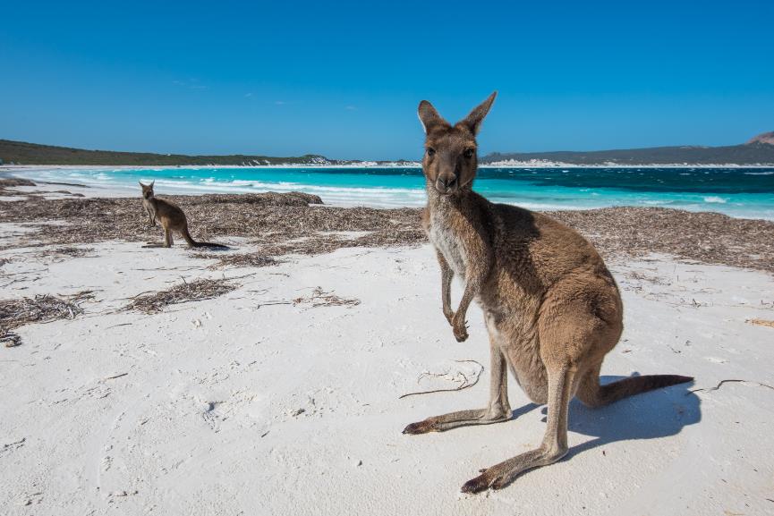在我们西澳最后的一站我们选择了埃斯佩兰斯,他是西澳茫茫海岸上最为璀璨的一颗明珠。为什么说是最为璀璨的明珠呢?原因就是在这个小城的东方,有一片享誉全澳洲的最美丽海滩—幸运湾。幸运湾拥有着与其他海岸一样洁白的沙滩和湛蓝的海水,但是如面粉一般细腻的沙子会让人觉得鞋子是一种负担,清爽透明的海水则让人对鱼儿羡慕不已。更加特别的是澳洲最具代表性的动物袋鼠也对这片海滩情有独钟,时不时会在海边悠闲的觅食和休息。同时幸运湾海岸宽阔,是允许带足工具的四驱车在海岸上行驶的。所以我们会看到人与袋鼠和谐相处,共同体验这醉人的风景的美好画面。
