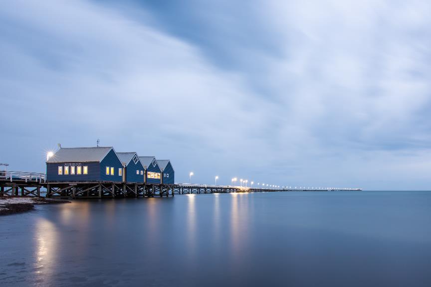 除了西澳的帕斯,西南还有一处不可错过的小镇叫做巴瑟尔顿, 位于珀斯以南约220公里的巴瑟尔顿,这里最具代表性的景观便是这座南半球最长,全球第二长的木质栈桥,而桥上甚至还有小火车供游客搭乘到栈桥尽头,欣赏沿途风光。众多的摄影爱好者对这座长达1800米的栈桥情有独钟,因为在日落时分,霞光下的栈桥显得格外静谧与美好。只可惜我们遇到了阴天,但在灯火初明时依然很好看。
