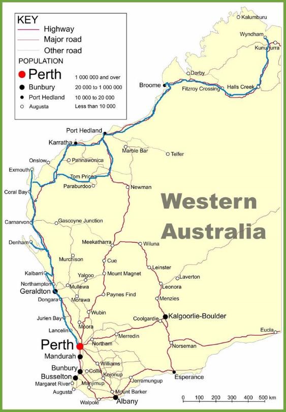 从地图中我们可以看到,西澳大利亚拥有漫长的海岸线,然而西澳各个景点的海岸风光却迥然不同,各有特色。