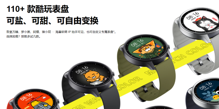 为了每个人的个性化需求,小米手表Color还支持大量个性化表盘,可以自由更换超过110款的潮流表盘。表盘更换操作非常简单,只要进入小米穿戴APP,即可下载心仪的风格表盘,比如吾皇万睡、罗小黑、阿狸等个性主题表盘,根据喜好随意切换。