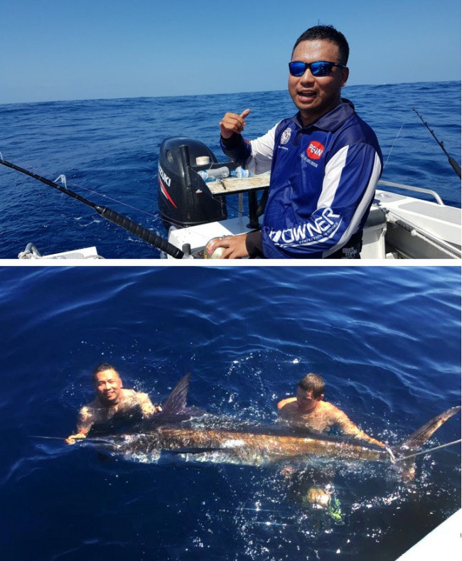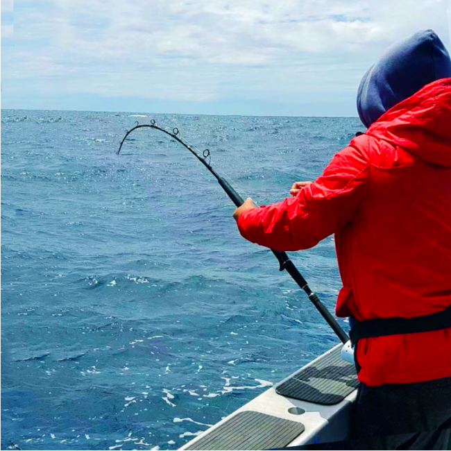 在我印象中,有三段海钓的旅程让我记忆十分深刻。第一段是发生2016年的澳大利亚,每年的澳洲夏季时间里,我们都会追逐马琳鱼。这种鱼在当地都生活在水温相对较高的区域,离岸也比较远,水深都在500-2000米左右。所以需要和澳洲熟悉当地情况的朋友驱船开船寻找,在经历了四个小时的搜索后才中了一条条纹马琳鱼(Striped Marlin),这是我第一次中了体积较大的鱼种。