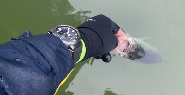头棚水库虽然不是特别大,但是鱼种却十分丰富,其中包括翘嘴、鲈鱼、鳜鱼、红鳟。唯一不太尽如人意的就是这几天的天气不是非常理想,气温很低,而且还有中雨。但是此次钓鱼行程中我拥有PRW-70Y-1PR,强悍的户外性能支持能够让我十分清晰的了解当地实际环境情况,一切情况众尽在掌握。