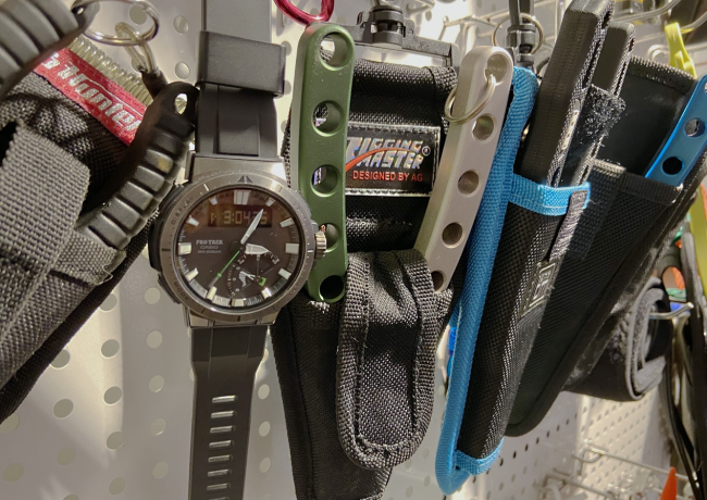 这里正好为大家展示一下很小一部分重型的海钓工具,图片中的这些工具看似无关紧要,但是在关键时候能给我很大的帮助。图中还有我最近新入手的卡西欧PRO TREK的钓鱼神器PRW-70Y-1PR,为什么说是钓鱼神器?我会在后面的文章中为大家一一解答。